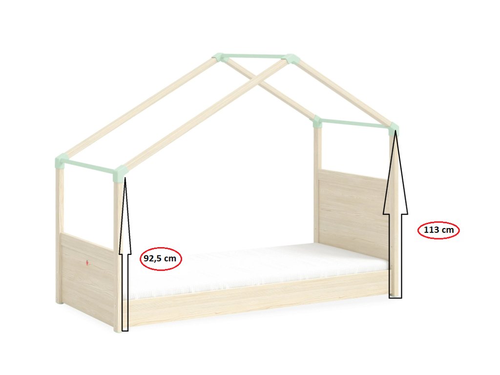 Detskú posteľ domček si určite zamiluje každé dieťa. Rozmer lôžka je 90 x 200 cm, takže je komfortný pre deti školského veku. Okrem samotnej konštrukcie postele je súčasťou balenia aj látková strieška podľa zvolenej farby (ružová, krémová, zelená). Markíza sa dá odopnúť a ľahko tak vyčistiť. Posteľ vďaka svojmu dizajnu neplní len funkciu miesta k spánku, ale je tiež herným prvkom. Kolekcia Montes je vhodná ako pre dievčatá tak i pre chlapcov.