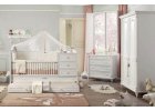 Romantic Baby, veľmi ozdobný nábytok v bielej farbe so striebristým tieňovaním, určený najmä do izbičky pre dievčatko.
