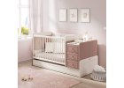 Elegance Baby, nežná kombinácia púdrovo ružovej a krémovej farby, podčiarknutá lesklými bronzovými kovovými úchytkami a nohami.