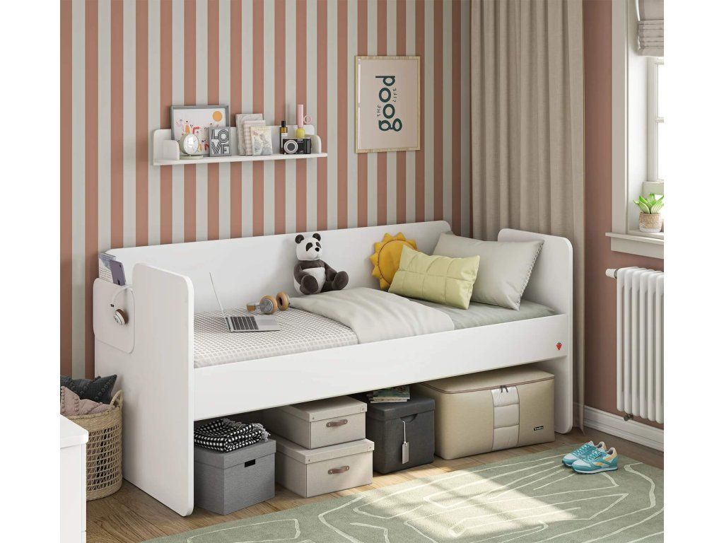 Kombinujte túto posteľ so spodným lôžkom White studio a získate poschodovú posteľ pre dve deti. Alebo so spodným rámom a máte zvýšené spanie, kde pod spodnú posteľ umiestnite napríklad skriňu, stôl, kreslo alebo aj druhú posteľ do L.