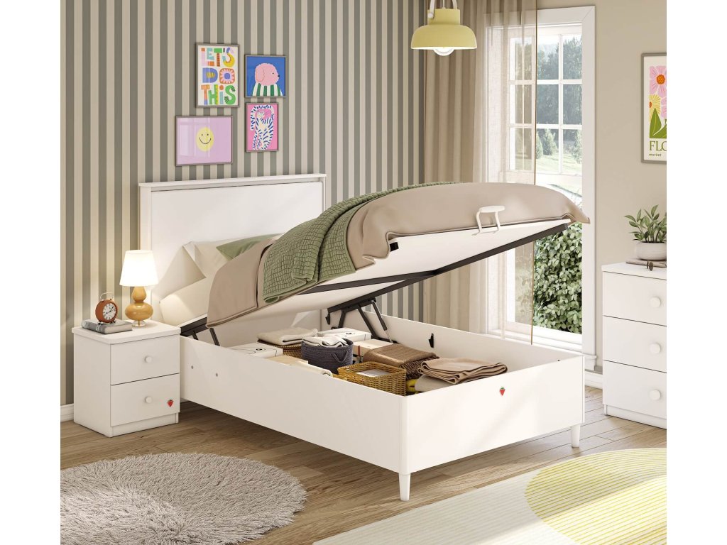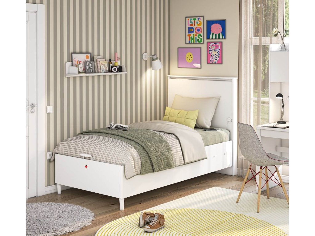 V menšej izbe nájde uplatnenie pre objemný úložný priestor vo vnútri postele. Študentská posteľ 100 x 200 cm z novej kolekcie Varia White ponúka množstvo úložného priestoru vo vnútri postele. Moderný nábytok do študentskej izby patrí a páčiť sa určite bude chlapcom aj dievčatám. Pomocou madla z čela postele (pri nohách) posteľ aj s matracom vyklopíme a otvorí sa nám objemný úložný priestor. Tento môžete využiť na uskladnenie takmer čohokoľvek.