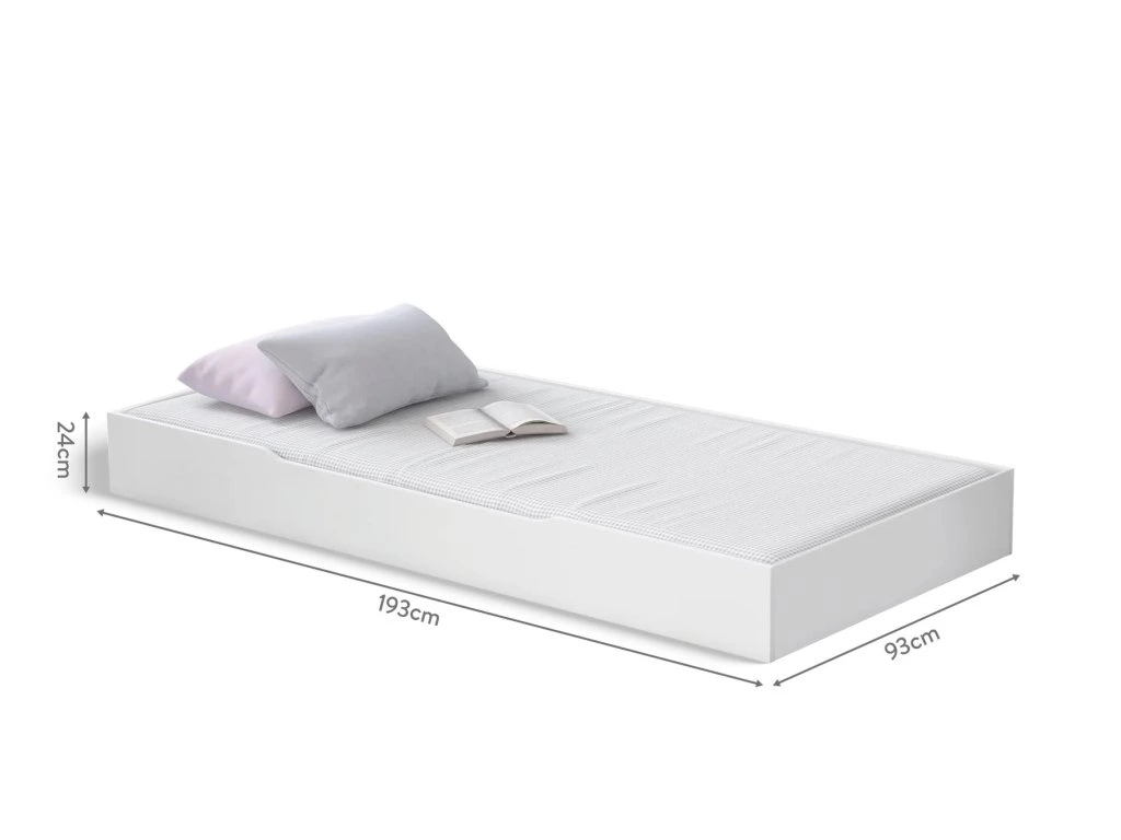 Výsuv pod posteľ Rustic White môžete využiť ako prístelku pre príležitostné prespanie kamarátky ... stačí dokúpiť matrac 90 x 190 cm. S prístelkou je ľahká manipulácia vďaka kolieskam, možno vysúvať na obe strany.