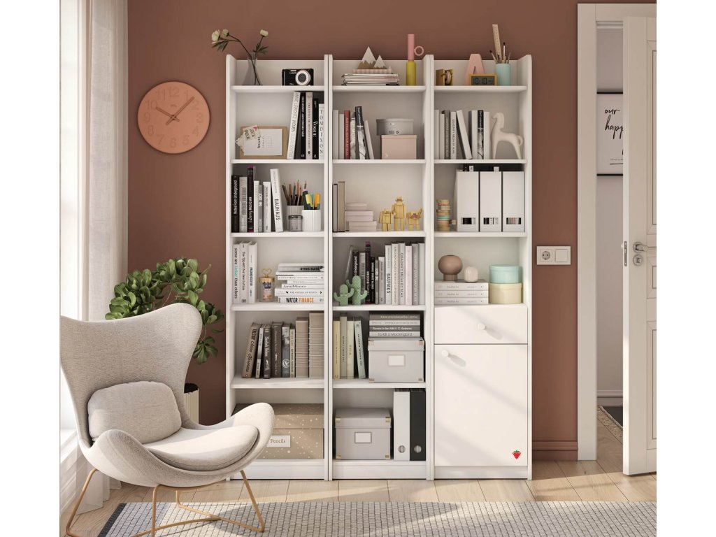 Moderná knižnica Varia White sa skvele hodí do každej detskej i študentskej izby. Vďaka svojej neutrálnej bielé farbe ju môžete využiť ako v izbe pre dievča, tak aj pre chlapca. Študentská knižnica v modernom a zároveň nadčasovom dizajne poslúži na uloženie knižiek, časopisov alebo školských pomôcok a iných menších predmetov.