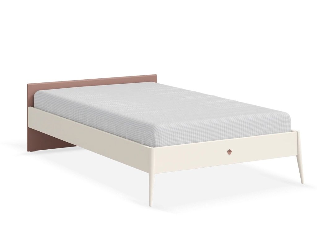 Kovové nohy v prednej časti postele umocňujú elegantný vzhľad a uľahčujú upratovanie pod posteľou. Farebné prevedenie - kombinácia krémovej a staroružovej farby, kovové nohy lakované do bronzových tónov. Konštrukciou je posteľ koncipovaná pre dospelého človeka, nosnosť lôžka je 130 kg. Doskový rošt je rozdelený na tri časti, pričom v každej sa nachádzajú vetracie otvory. Matrac odporúčame s pružinovým jadrom, priamo od výrobca navrhnuté matrace nájdete v sekcii Doplnky - matrace.