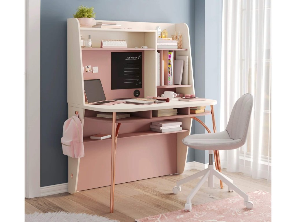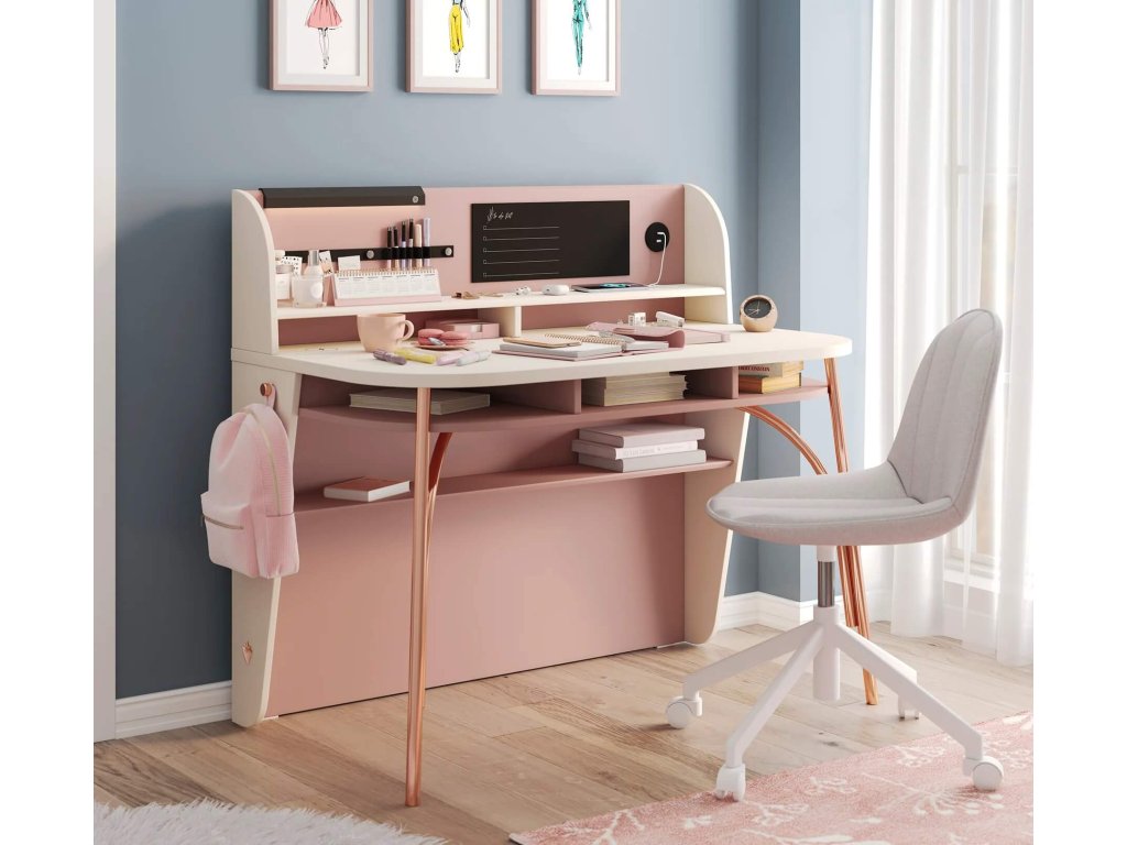 Písací stôl je plne kompatibilný s oboma nástavcami Elegance. Jemná kombinácia krémovej a staroružovej farby je doplnená o detaily v imitácii ružového zlata (kovové nohy). Písací stôl Elegance má veľkú pracovnú plochu, odkladacie police pod pracovnou doskou a pýšiť sa môže zabudovanou bezdrôtovou nabíjačkou. Nabíjačka je na pracovnej doske vyznačená laserovým gravírovaním.
