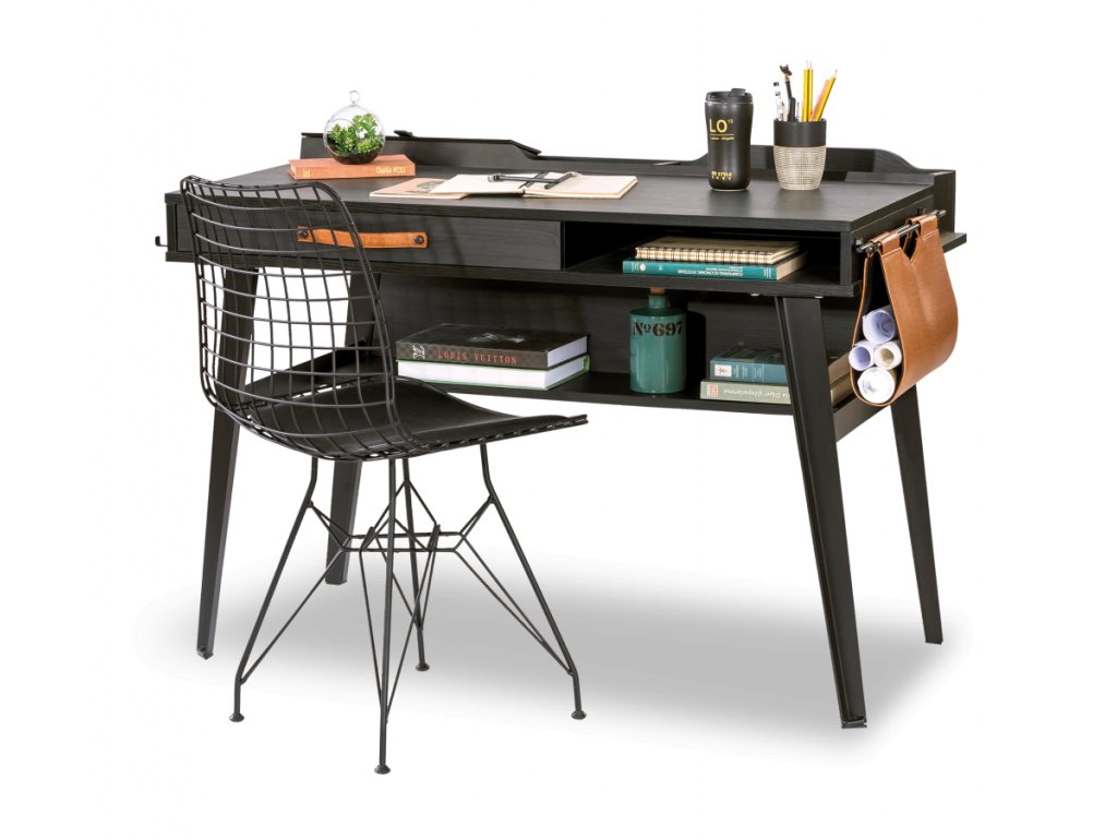 Študentský písací stôl z rady Dark Metal je vyrábaný v rozmere, ktorý poskytne dostatočný priestor pre štúdium. Vrchná strana pracovnej dosky je navrhnutá v dekore Canyon Metal, ostatné časti sú vyrobené v dekore Black Embos. Nohy písacieho stola pre študentov sú kovové. Stôl je vybavený niekoľkými policami a zásuvkou s úchytkou z eko kože. V hornej zadnej časti študentského písacieho stola nájdete veľmi praktický úložný priestor s dvoma priehradkami pre uloženie drobných potrieb a ďalej dva USB vstupy pre nabíjanie smart zariadenia (mobilné telefóny, tablety a podobne). Na pravej strane písacieho stola je umiestnené vrecko z eko kože. nástavec k písaciemu stolu, ktorý zväčší možnosť uloženia všetkého potrebného do školy alebo voľný čas. Súčasťou nadstavca je tabuľa, magnetická tabuľa a horná polica s kovovými háčikmi na úchytkách z eko kůže. Nadstavec ku študentskému písaciemu stolu Dark Metal využijete na písanie alebo pripnutie poznámok alebo odkazov a uloženie alebo zavesenie drobných predmetov.