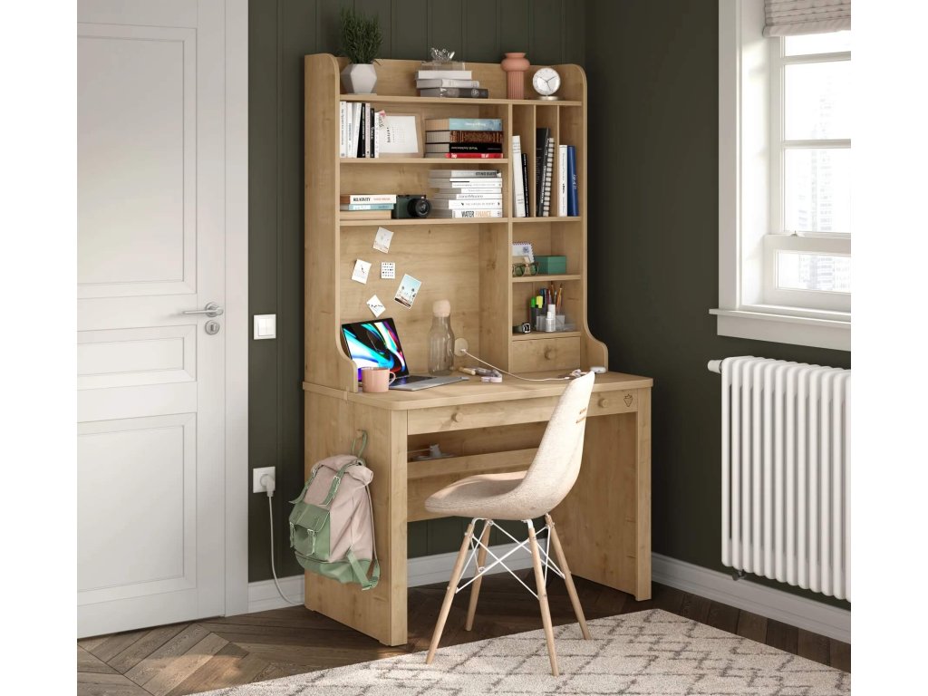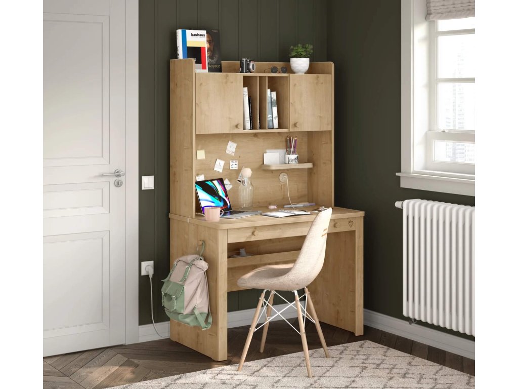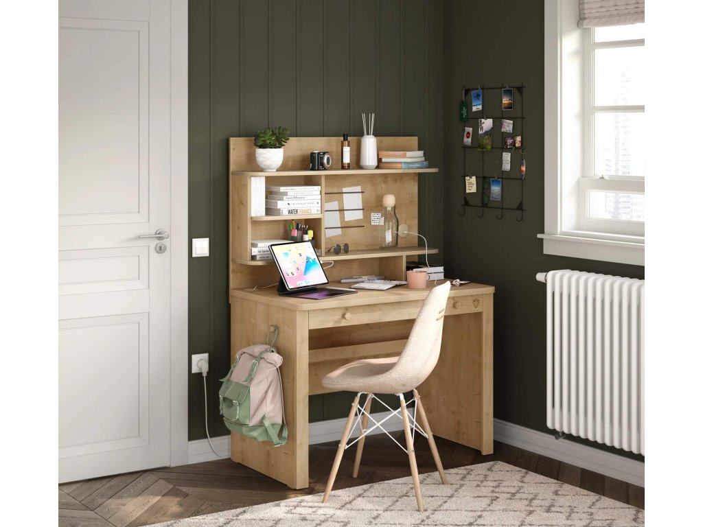 Nezabudnite, že písací stôl je nutnou súčasťou každej detskej i študentskej izby. Písací stôl z kolekcie Mocha má veľkú pracovnú plochu a úložný priestor v podobe členenej zásuvky. Odporúčame doplniť o nadstavec k písaciemu stolu Mocha (vyberať môžete z troch druhov), ktorý ocenia predovšetkým väčšie deti a študenti, ktorí potrebujú mať v dosahu všetky svoje školské potreby.