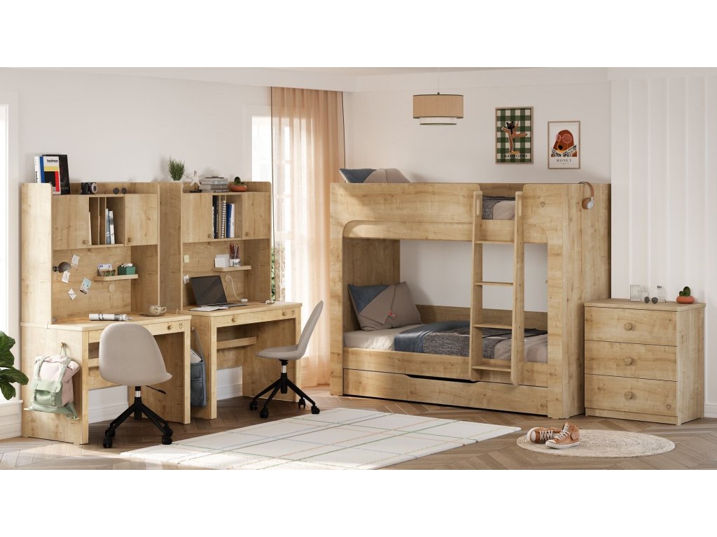 Kolekcia nábytku Mocha je určená pre všetky deti a študentov od veku 6 rokov až do dospelosti. Vďaka svojmu dizajnu je určená ako pre dievčatá, tak aj pre chlapcov. Skvele sa tiež hodí do súrodeneckých izieb. Neutrálnu farbu nábytku môžete ľahko kombinovať s prvkami či doplnkami v prírodných, zemitých odtieňoch, alebo vytvoriť farebný kontrast pomocou výmaľby/tapiet, doplnkov a bytového textilu. V ponuke nájdete všetky nevyhnutné prvky do izby pre študenta alebo študentku.